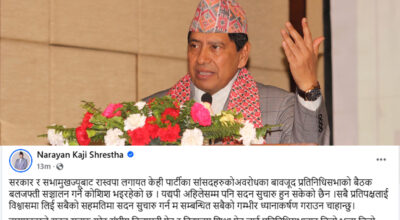 काठमाडौं – माओवादी उपाध्यक्ष नारायणकाजी श्रेष्ठले रास्वपालगायतका दलको अवरोधका बाबजुद पनि संसद् बलजफ्ती चलाउने कोसिस