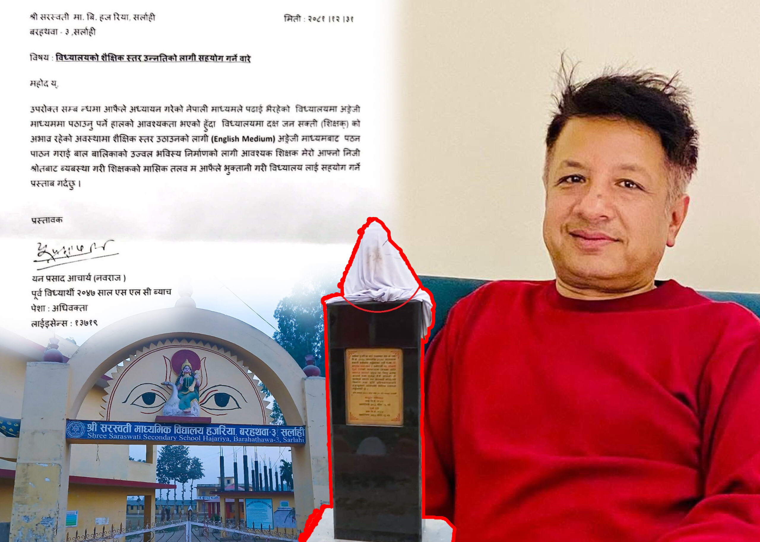 काठमाडौं - व्यवसायी नवराज आचार्यले आफ्नो हजुरबुवाको शालिक राख्न दिए बापत सरस्वती माविलाई आर्थिक सहयोग गर्ने प्रलोभन दिएका छन् । शालिक राखेपछि चौतर्फी रूपमा आलोचना खेप्दै आएका आचार्यले सरस्वती माविमा अंग्रेजी माध्यमबाट पठनपाठन भएमा आफ्नो निजी स्रोतबाट व्यवस्था गरी शिक्षकको मासिक तलब बेहोर्ने प्रलोभनसहितको प्रस्ताव गरेका छन् । ‘उपरोक्त सम्बन्धमा आफैले अध्ययन गरेको नेपाली माध्यमले…