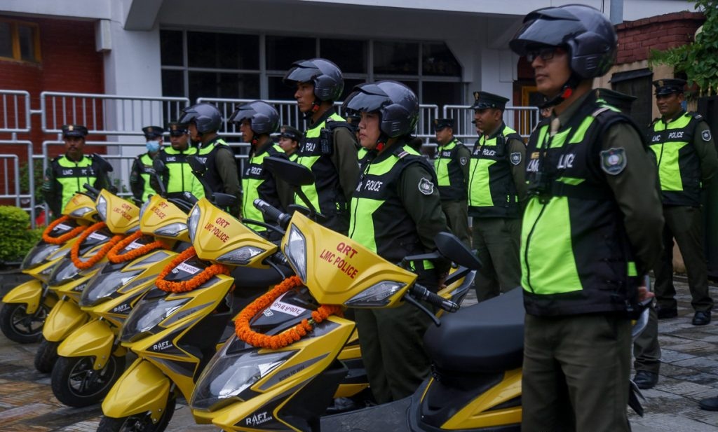 ललितपुरको नगर प्रहरीको ‘क्विक रेसपोन्स टिम’ले विद्युतीय स्कुटरमा गस्ती थालेको छ । बिहीबार एक कार्यक्रमका बीच मेयर चिरिबाबु महर्जनले नगरप्रहरीलाई स्कुटर हस्तान्तरण गरेर गस्तीको शुभारम्भ गरे । अहिलेसम्म नगर प्रहरीले साइकलमा गस्ती गर्दै आएको छ । महानगरपालिकाले दिएको ५ वटा स्कुटरबाट नगर प्रहरीले गस्ती सुरु गरेको हो ।
