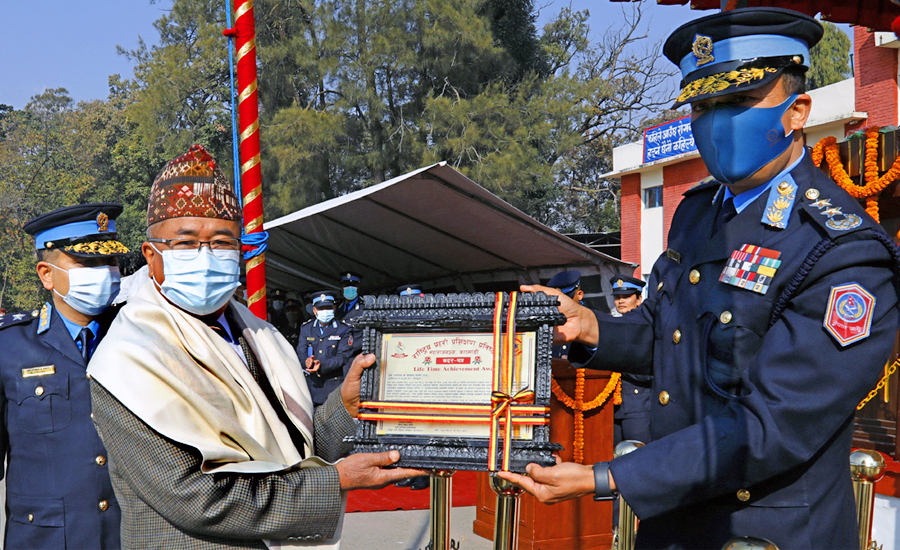 काठमाडौँ , २८ माघ । नेपाल प्रहरीबाट अवकाश प्राप्त प्रहरी उपरीक्षक एसपी जयविष्णु नेपाली सम्मानित भएका छन् । राष्ट्रिय प्रहरी प्रशिक्षण प्रतिष्ठान, महाराजगञ्जको ६६औं वार्षिकोत्सवमा प्रहरी महानिरीक्षक आईजीपी शैलेश थापा क्षेत्रीले नेपालीलाई ‘लाइफ टाइम एचिभमेन्ट अवार्ड’बाट सम्मान गरेका हुन् । प्रतिष्ठान र अपराध अनुसन्धान विद्यालयमा लामो समय काम गरेर घटनास्थल अनुसन्धान अधिकृत तालिम र अनुसन्धानात्मक…