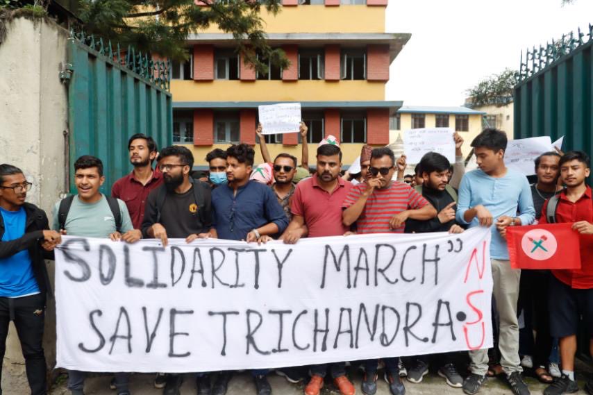 नेपाल विद्यार्थी संघ [नेविसंघ] ले जीर्ण त्रिचन्द्र कलेजको भवन पुन : निर्माणको माग राख्दै प्रदर्शन गरेको छ । नेविसंघ त्रिचन्द्र इकाइको अगुवाइमा शुक्रबार विद्यार्थीहरु प्रदर्शनमा उत्रिएका छन् । विभिन्न कलेजका सहभागी विद्यार्थीहरुले त्रिचन्द्र कलेजको पुन : निर्माण गर्न माग गर्दै प्लेकार्डसहित ¥याली निकालेका हुन् । त्रिचन्द्र कलेजबाट सुरु गरिएको ¥याली रत्नपार्क, जमल, तिनधारा पाठशाला हुँदै…