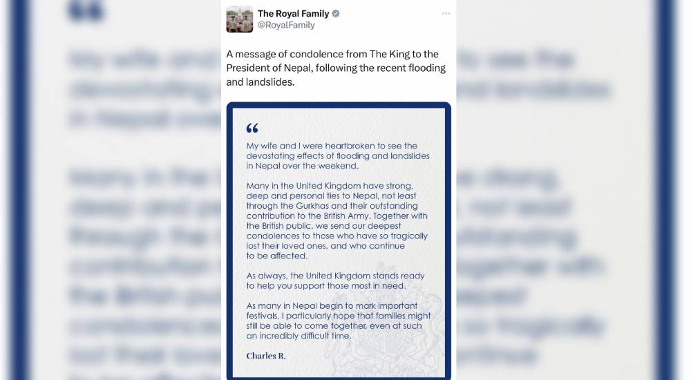 काठमाडौं– गत हप्ता नेपालमा अबिरल वर्षाका कारण गएको प्राकृतिक विपतप्रती बेलायती राजारानीले चिन्ता प्रकट गरेका छन्। नेपाल र बेलायत सम्बन्ध गोर्खाहरूको योगदानले मात्र नभएर धेरै कुराले भएको भन्दै बेलायती राजाले नेपालमा धेरै बेलायतीको भावनात्मक सम्बन्ध रहेको उल्लेख गरेका छन् । राजाले यो सन्देश एक औपचारिक वक्तव्यमार्फत सार्वजनिक गरेका छन्। राजा र रानीले दिएको सन्देश राजपरिवारको…