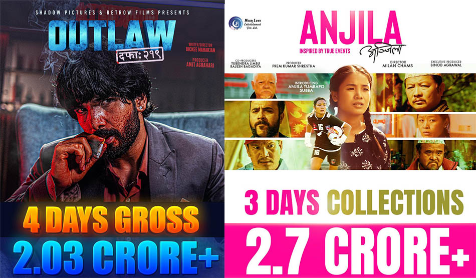 विहिबारदेखि एकसाथ रिलिजमा आएका दुई फिल्म ‘आउटलः दफा २१० र अञ्जिला’ टिमले आ आफ्नै दाबी गर्दै बक्स अफिस कलेक्शन सार्वजनिक गरेका छन् ।दुई फरक जनराका यी फिल्मले आ आफ्नै तरिकाले दर्शक तानिरहेका छन् । ‘आउटल’ले एक्सन जनरा मन पराउने दर्शक तानेको छ भने ‘अञ्जिला’ले पारिवारिक दर्शक तानेको छ ।यसैबिच, यी दुई फिल्मका निर्माताले ३ र…