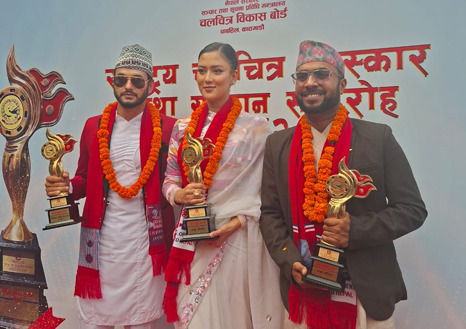 आज राष्ट्रपति भवन शित्तल निवासमा आयोजना भएको ‘राष्ट्रिय चलचित्र पुरस्कार तथा सम्मान २०८२’मा फिल्म ‘शाम्बाला’ले उत्कृष्ट फिल्म र उत्कृष्ट निर्देशकको अवार्ड जितेको छ । यो फिल्मबाट मिनबहादुर भामले उत्कृष्ट निर्देशकको अवार्ड पाए । यस्तै, फिल्म ‘पूर्ण बहादुरको सारंगी’बाट नायक विजय बरालले उत्कृष्ट अभिनेताको अवार्ड जित्दै गर्दा फिल्म ‘खुश्मा’बाट उपासना सिंह ठकुरीले उत्कृष्ट अभिनेत्रीको अवार्ड प्राप्त…