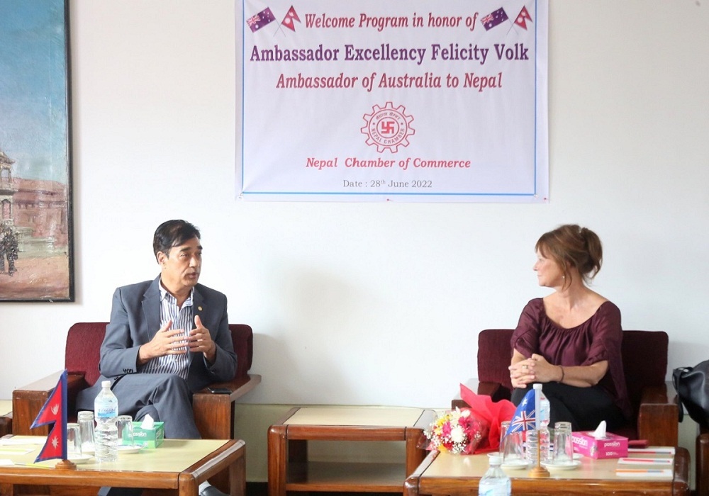 असार १४ : नेपाल चेम्बर अफ कमर्सले नेपालमा लगानीका लागि अष्ट्रेलिया समक्ष आग्रह गरेको छ। नेपालका लागि अष्ट्रेलियन राजदूत फेलीसिटी वोल्कसग काठमाडौंको जमलस्थित चेम्बर भवनमा मंगलबार भएको भेटवार्तामा चेम्बरका पदाधिकारीले जलविद्युत, वन, पर्यटन, कृषि एवम् साना उद्योगमा लगानीका लागि आग्रह गरेका हुन्। नेपाल र अष्ट्रेलियाबीच ६० वर्षभन्दा पुरानो कुटनीतिक सम्बन्धलाई थप बलियो बनाउन सरकारी र…