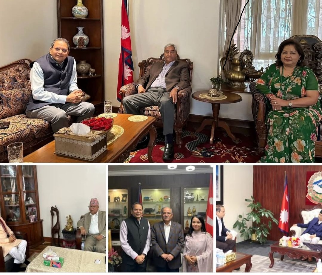 काठमाडौं - तीनदिने नेपाल भ्रमणका क्रममा बुधबार काठमाडौं आएका भाजपा विदेश विभागका इन्चार्ज डा. विजय चौथाइवाले प्रधानमन्त्रीसहितका नेताहरूसँगको भेटघाटमा व्यस्त छन् । काठमाडौं ओर्लिएदेखि उनले राजनीतिक भेटवार्तालाई तीव्रता दिएका थिए । यसबीचमा उनले प्रधानमन्त्री एवं एमाले अध्यक्ष केपी ओली, कांग्रेस सभापति शेरबहादुर देउवा र महामन्त्री गगन थापा, माओवादी अध्यक्ष पुष्पकमल दाहाल प्रचण्डलगायतका शीर्ष नेतासँग भेट गरेका…