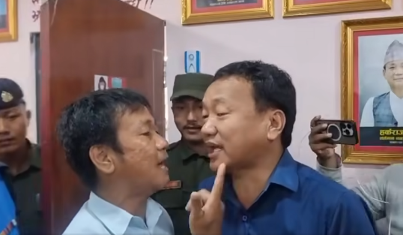 प्रहरीको हस्तक्षेपपछि अवस्था नियन्त्रणमा धरान — धरान उपमहानगरपालिकाका मेयर हर्कराज राई साम्पाङ र उपमेयर आइन्द्रविक्रम बेघाका समर्थकहरूबीच झडप भएको छ। उपमहानगरपालिका कार्यालय बाहिर दुई पक्षबीच विवाद चर्किएर झडपमा परिणत भएको हो। सोमबार मेयर साम्पाङले उपमेयर बेघालाई कार्यकक्षमा बोलाएका थिए। सोही क्रममा समर्थकहरूले हातपातको प्रयास गरेपछि स्थिति तनावपूर्ण बनेको थियो। मंगलबार बेघा पक्षधरहरू उपमहानगर परिसरमा भेला…