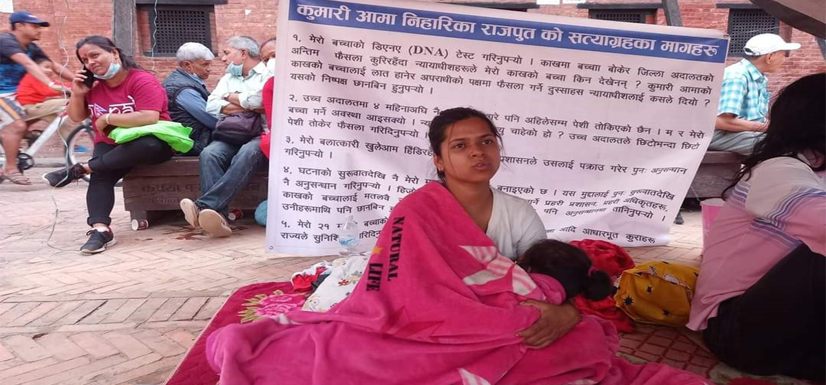 कुमारी आमा भनेर चिनिएकी निहारिका राजपुतले आत्मदाह प्रयास गरेकी छिन् । शुक्रवार राष्ट्रपति भवन शितलनिवास अगाडी सडकमा उनले आत्मदाह प्रयास गरेकी छिन। पेट्रोल छर्केर आफ्नो शरिरमा आगो लगाउने उनको प्रयासलाई प्रहरीले रोकेका छन् । प्रहरीले उनलाई नियन्त्रणमा लिएको छ । उनी आफ्नो २ वर्षीया छोरासहित शितलनिवास पुगेकी थिइन् । उनी साउन २० बाट आमरण अनशनमा…