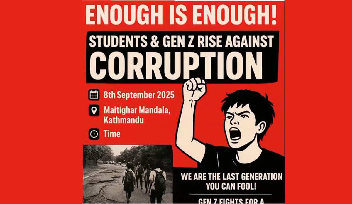 काठमाडौं । सामाजिक सञ्जाल प्रतिबन्ध र भ्रष्टाचारविरुद्ध जेनजी पुस्ताले सोमबार देशभर प्रदर्शनको तयारी गरेका छन् । नेताहरुको भ्रष्टाचारका कारण आफूहरुको भविष्य बर्बाद भएको भन्दै ‘जेनजी’ पुस्ताले यस्तो अभियान थालेको हो। यो समूहले सोमबार सामाजिक सञ्जालमाथि नियन्त्रण र भ्रष्टाचारको विरोधमा काठमाडौंमा प्रदर्शनको लागि आह्वान गरेका छन्। काठमाडौंमा संसद् भवन अगाडि र अन्य सबै जिल्लामा सदरमुकाममा विरोध…