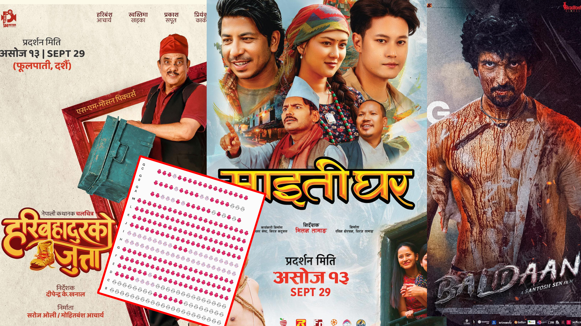 काठमाडौं । यसपालिको बडादसैँमा तीनवटा नेपाली चलचित्र एक साथ रिलिज हुँदैछन् । फुलपातीको दिन सोमबारदेखि ‘बलिदान’, ‘माइतीघर’ र ‘हरिबहादुरको जुत्ता’ देशभर र बाहिर एकसाथ प्रदर्शनमा आउँदैछन् । कथावस्तुका हिसाबले तीनवटै चलचित्र फरक फरक भएकाले दर्शकले आआफ्ना रुचिअनुसार हेर्न सक्नेछन् । ‘बलिदान’ एक्सन प्रधान चलचित्र हो । ‘माइतीघर’ फेमेली ड्रामा र कमेडी जनरामा बनेको चलचित्र हो…