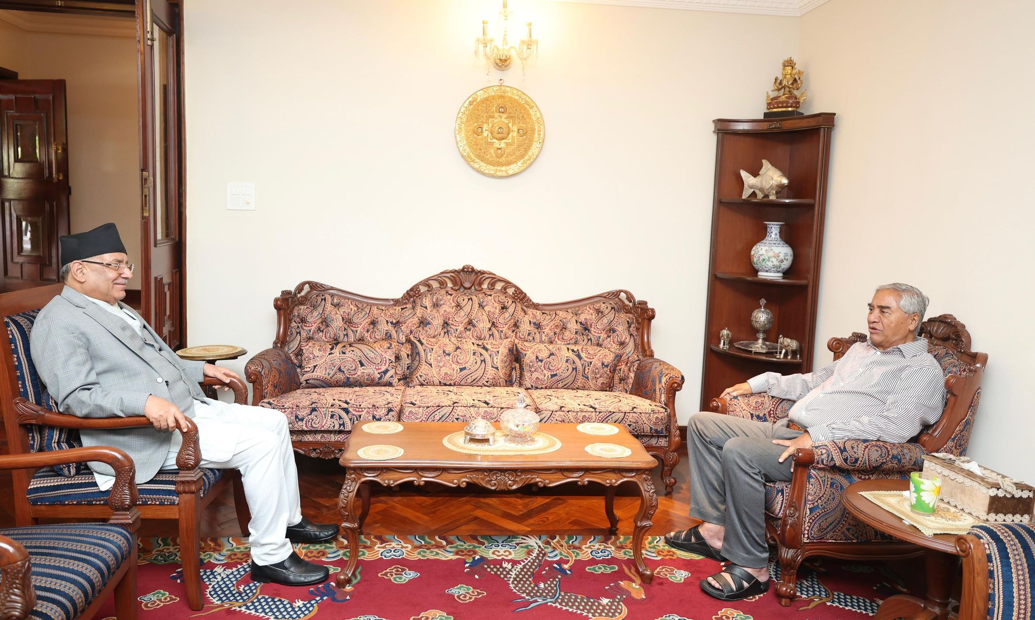 काठमाडौं । माओवादी अध्यक्ष पुष्पकमल दाहाल प्रचण्ड ११ महिनापछि पहिलोपटक कांग्रेस सभापति शेरबहादुर देउवा निवास बुढानिलकण्ठ पुगेका छन् । कांग्रेस–एमाले गठबन्धनको सरकार बनेपछि प्रचण्डले देउवालाई पहिलोपटक घरमै पुगेर भेटेका हुन् । प्रचण्डले पटकपटक देउवालाई भेट्न खोजे पनि सम्भव भएको थिएन । दुई नेताबीच फोन संवाद र त्रिपक्षीय भेटवार्ता भने भइरहेको छ । यसअघि डडेल्धुरा पुगेर…