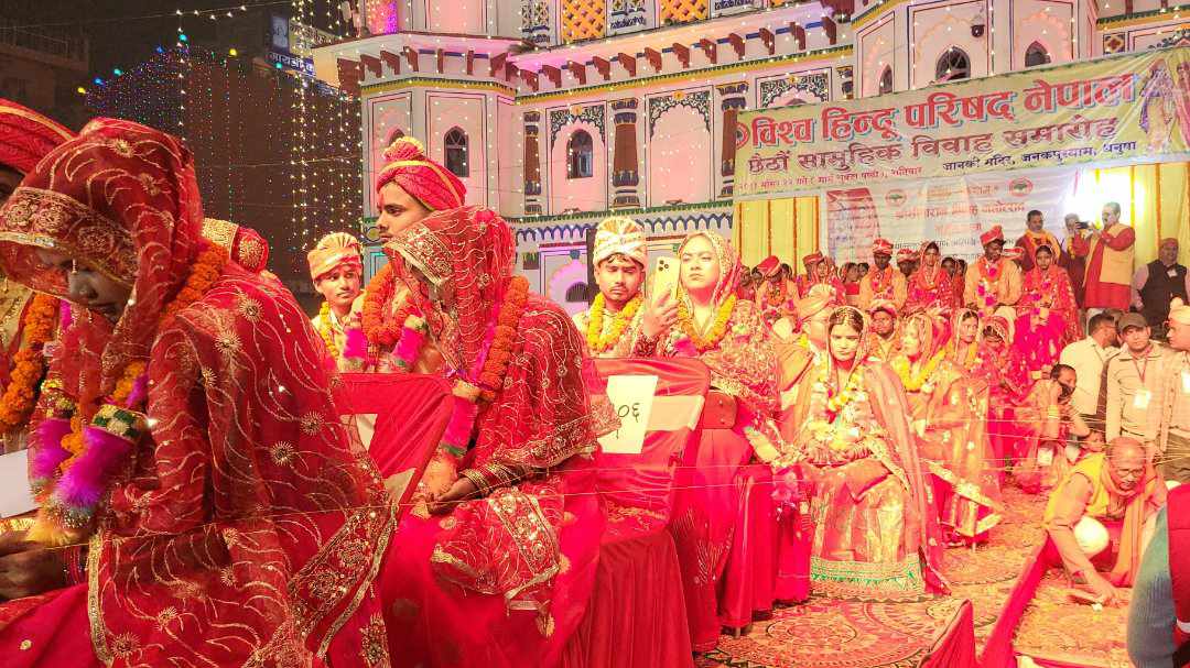 जनकपुरधाम– सीताराम विवाह पञ्चमीको अवसरमा शनिबार जानकी मन्दिरमा ३४ जोडी विवाह बन्धनमा बाँधिएका छन् । यी जोडीले शनिबार राति हुन्दु परम्परा अनुसार जानकी मन्दिर परिसरमा सामुहिक विवाह गरेका हुन् । तर यो विवाहमा दुलाहा दुलही पक्षले खर्च गर्नुपरेन भने दाइजोको लेनदेनपनि भएन । उनीहरुको विवाहमा लाग्ने सम्पूर्ण खर्च विश्व हिन्दू परिषद् नेपालले गरेको हो ।…