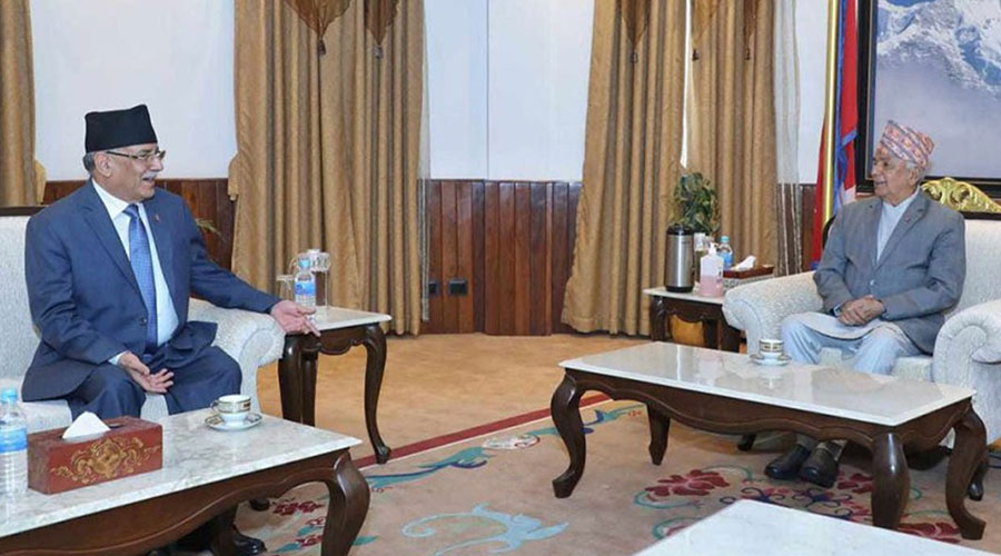 काठमाडौं — राष्ट्रपति रामचन्द्र पौडेल र नेकपा (माओवादी केन्द्र)का अध्यक्ष पुष्पकमल दाहाल ‘प्रचण्ड’बीच शीतल निवासमा भेटवार्ता भएको छ। राष्ट्रपति पौडेललाई भेट्न प्रचण्ड शीतल निवास पुगेका हुन्। प्रचण्डको सचिवालयका अनुसार उनीहरूबीच समसामयिक राजनीतिक विषयमा छलफल भएको थियो। भेटका क्रममा पछिल्लो समय बाहिर आएका सत्ता गठबन्धन टुट्ने चर्चासमेत विषय बनेको थियो। एक पदाधिकारीका अनुसार, राष्ट्रपति पौडेलले ती…